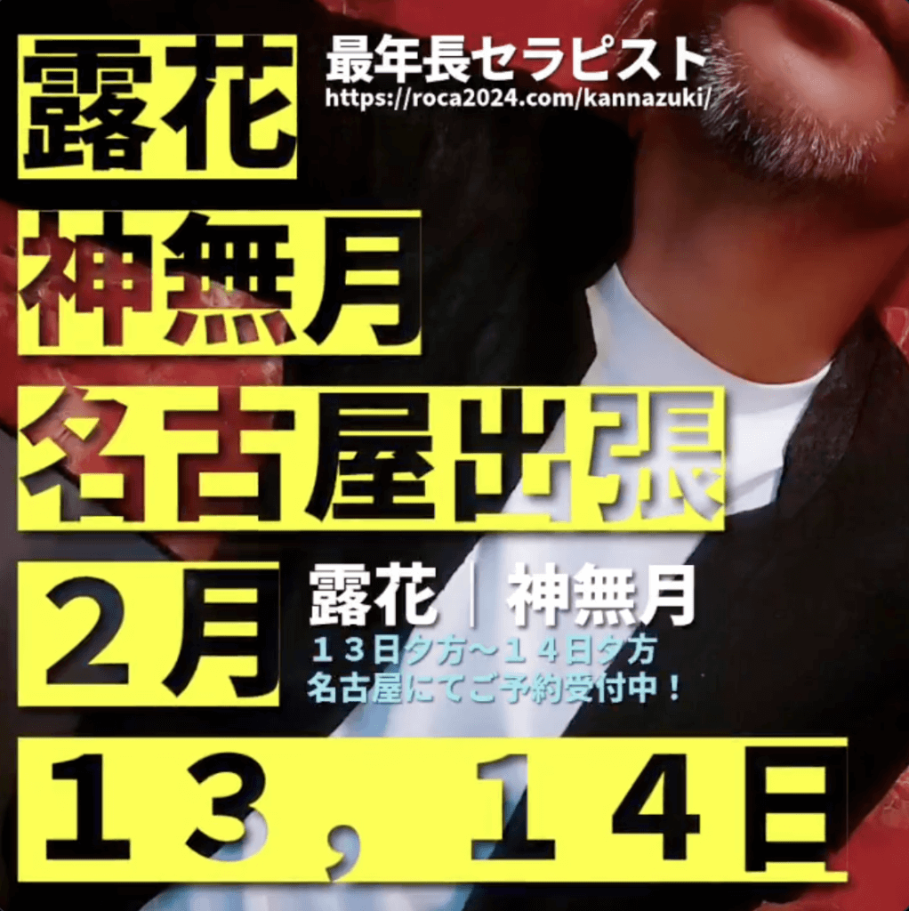 2月12日(木)から、本業であるデザインの仕事で「名古屋出張」になります。 今年初の名古屋入り! 12-13日は本業の現場や打ち合わせがありますが13日の夜から14日の夕方まで「セラピスト業」でご予約を受けさせて頂きます! ご予約について 12月に露花に所属させて頂いてから神無月としては“初”の『名古屋出張』となります。 ご予約可能な日時... -
