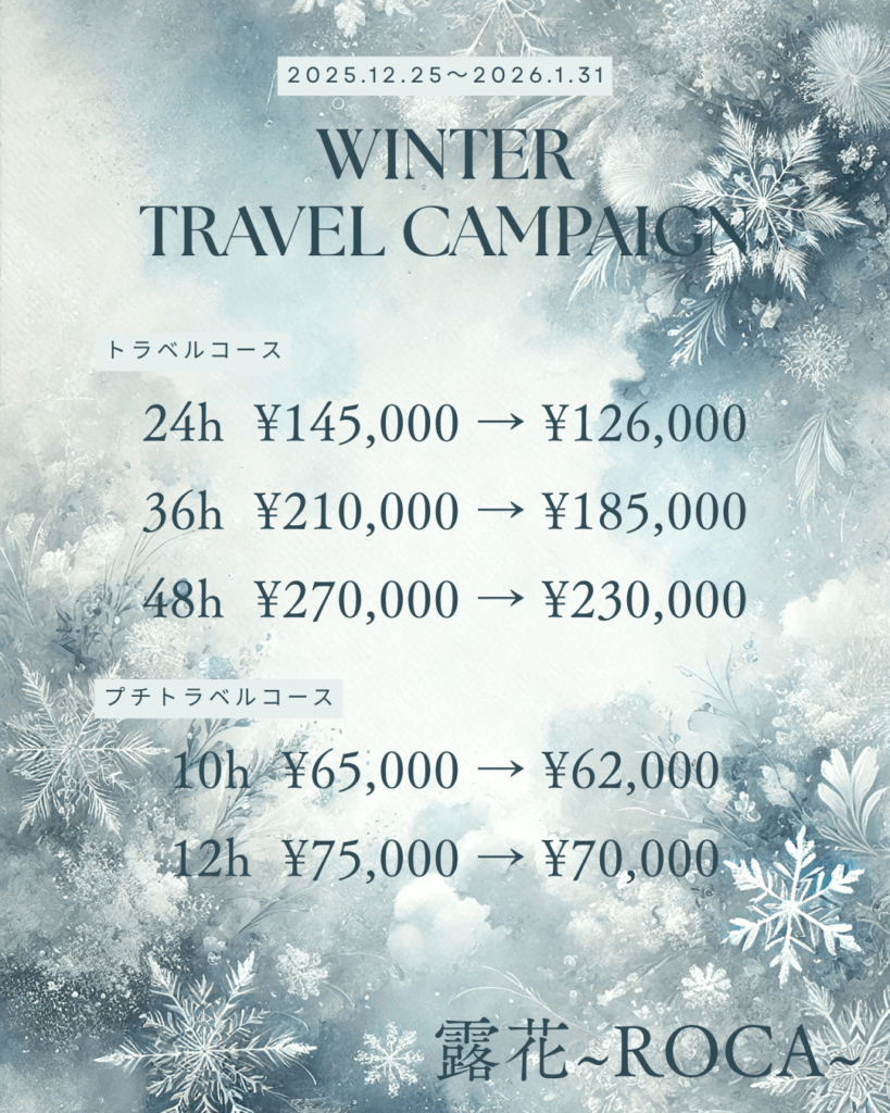冬は、誰かと「遠くへ行きたくなる季節」。 慌ただしい日常から少し離れて、時間を気にせず、言葉を急がず、ただ一緒に過ごすための旅。 この冬、露花ではウインタートラベルキャンペーンを開催します。 雪の気配、澄んだ空気、夜が長いからこそ生まれる静けさ。そのすべてを、二人だけの時間に。露花~ROCA~【キャンペーン期間】2025.12.25 ... -