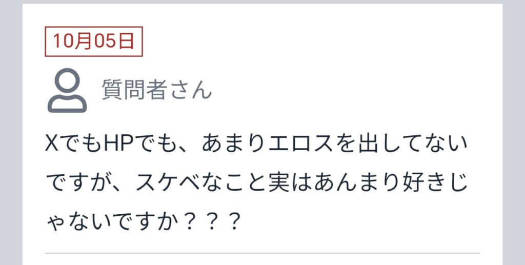 再編再掲日記ですが、これはありがたい質問でした。 質問:XでもHPでも、あまりエロスを出してないですが、スケベなこと実はあんまり好きじゃないですか??? 僕の発信力不足ですね、スケベが大好きです。基本的にやらしい妄想して日常生活してますが、社会人として、ちゃんと押さえつけ隠して生きています。 HPではまぁまぁ、あのくらいがと... -