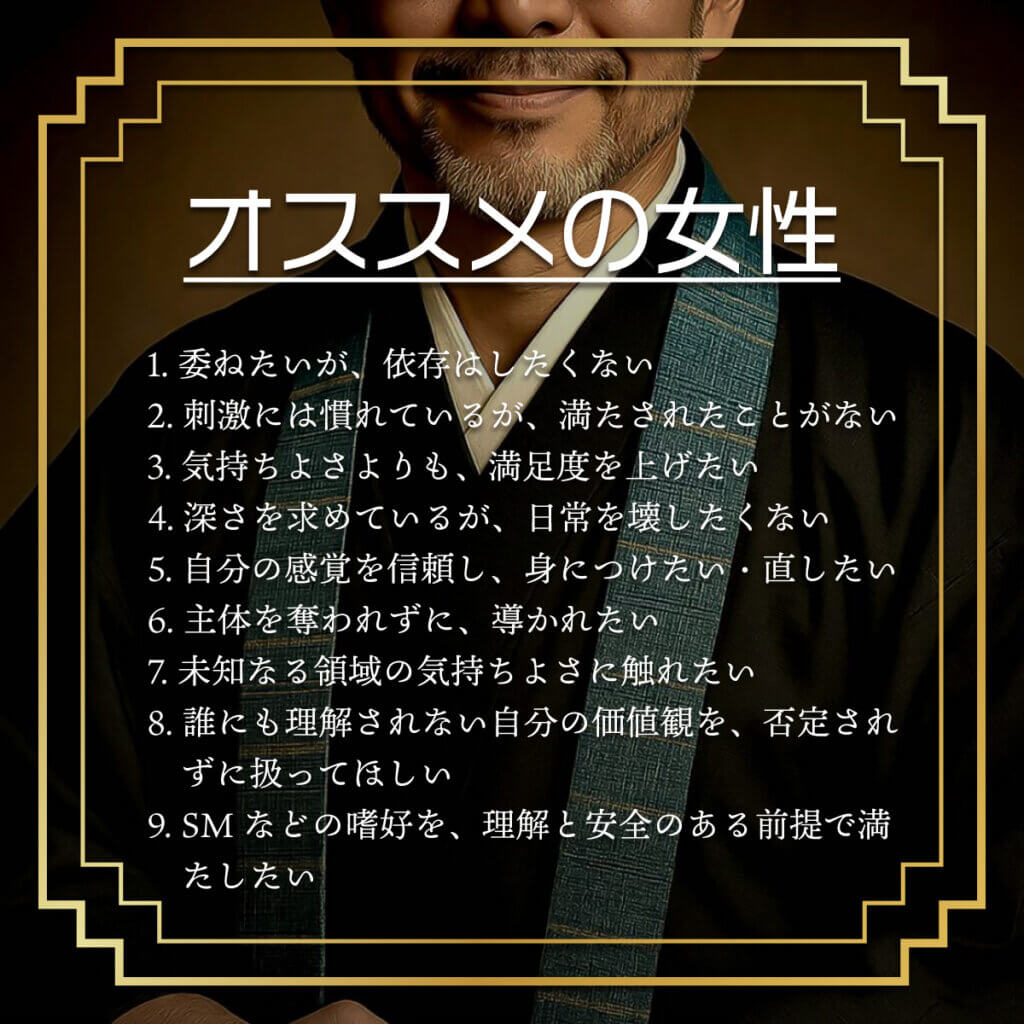 主体と日常を失いたくない女性のための性のパーソナルトレーナー。